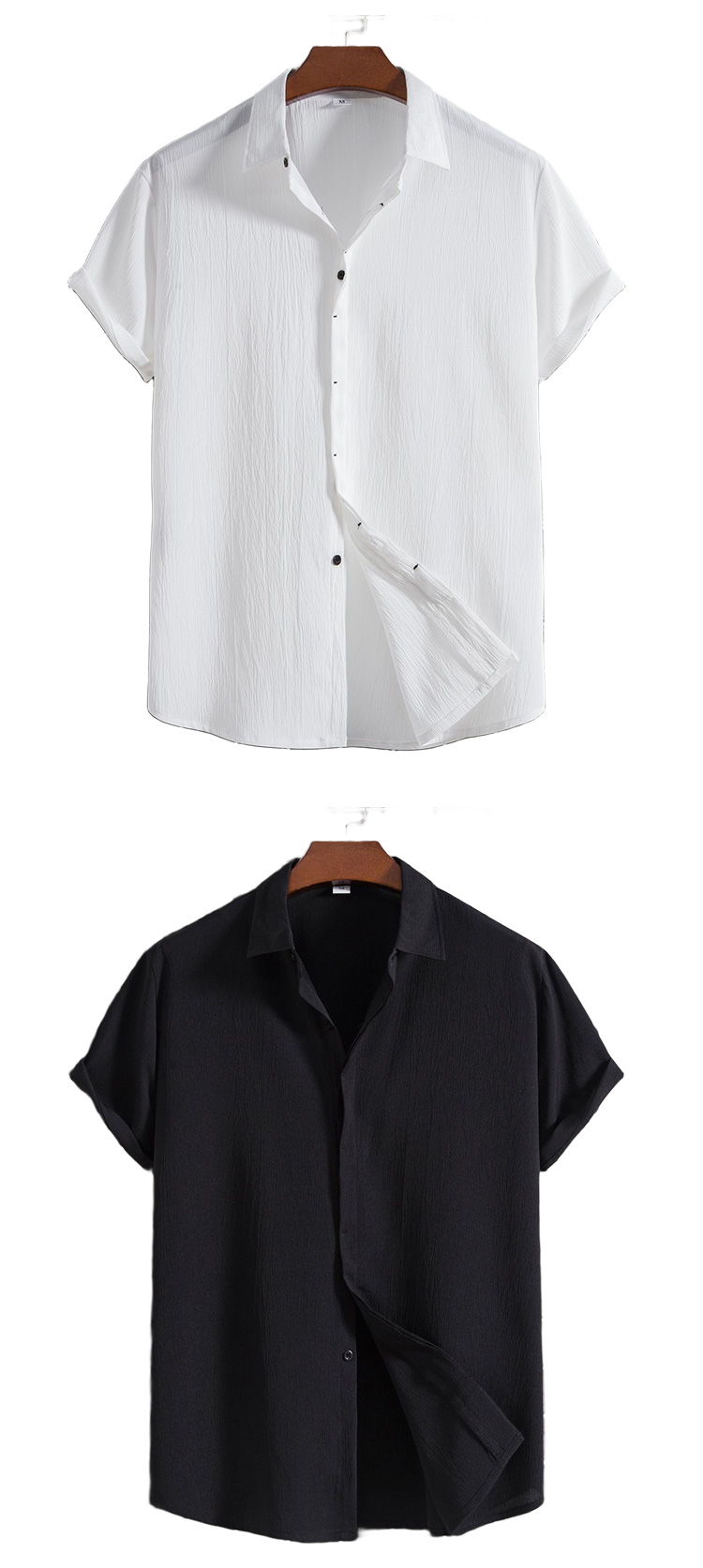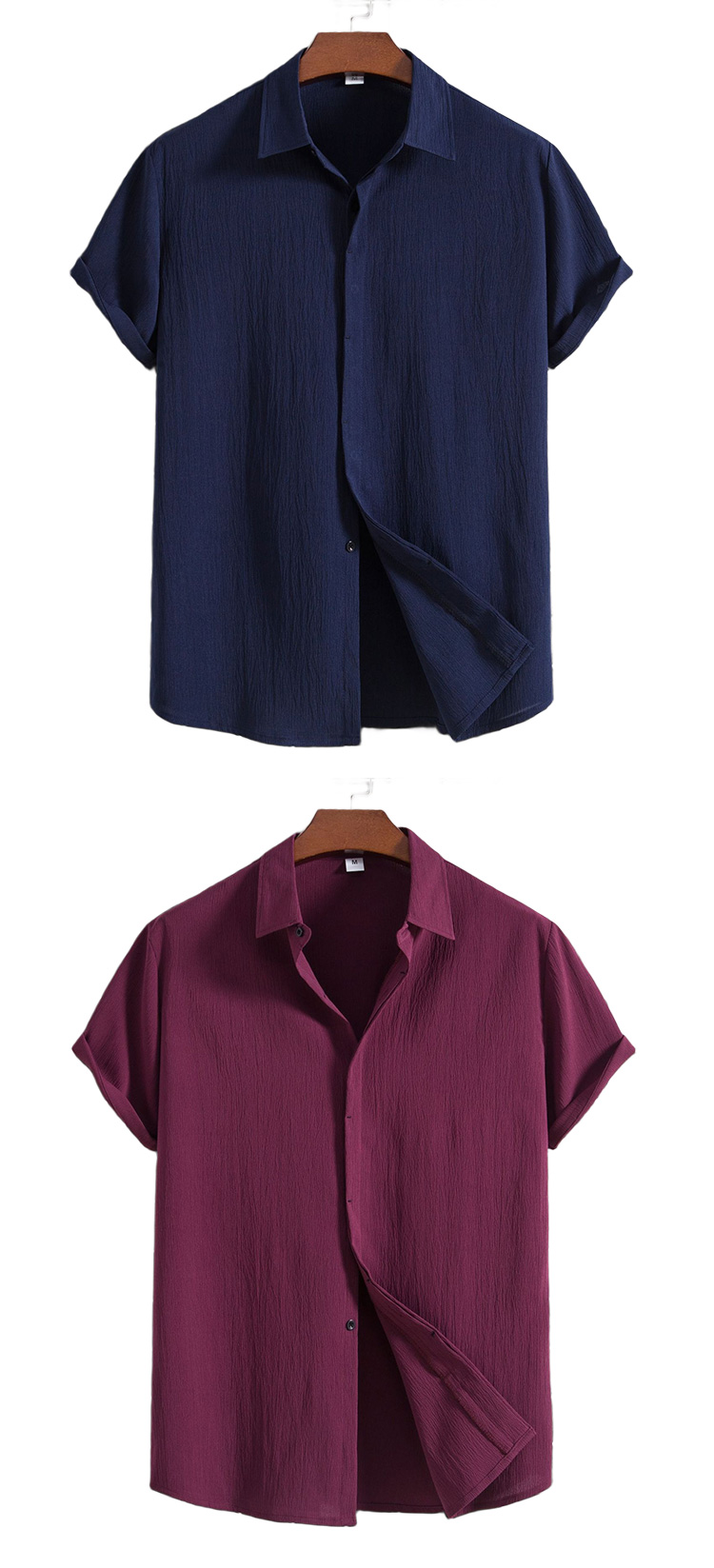 Kurzärmliges Herrenhemd aus Baumwolle und Leinen mit Knöpfen