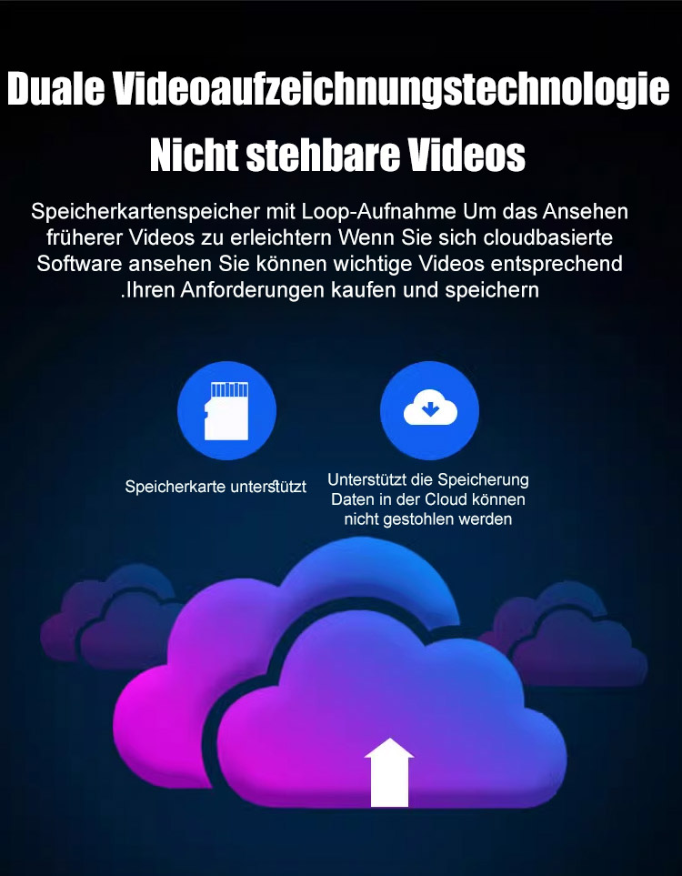 Genießen Sie klare Bilder aus der Ferne, nahtlose Überwachung bei Tag und Nacht. 250 GB Speicher, keine Speicherprobleme. Eine Ladung hält 6 Monate. Ideal für Zuhause, Garten oder sogar als Dashcam im Auto.